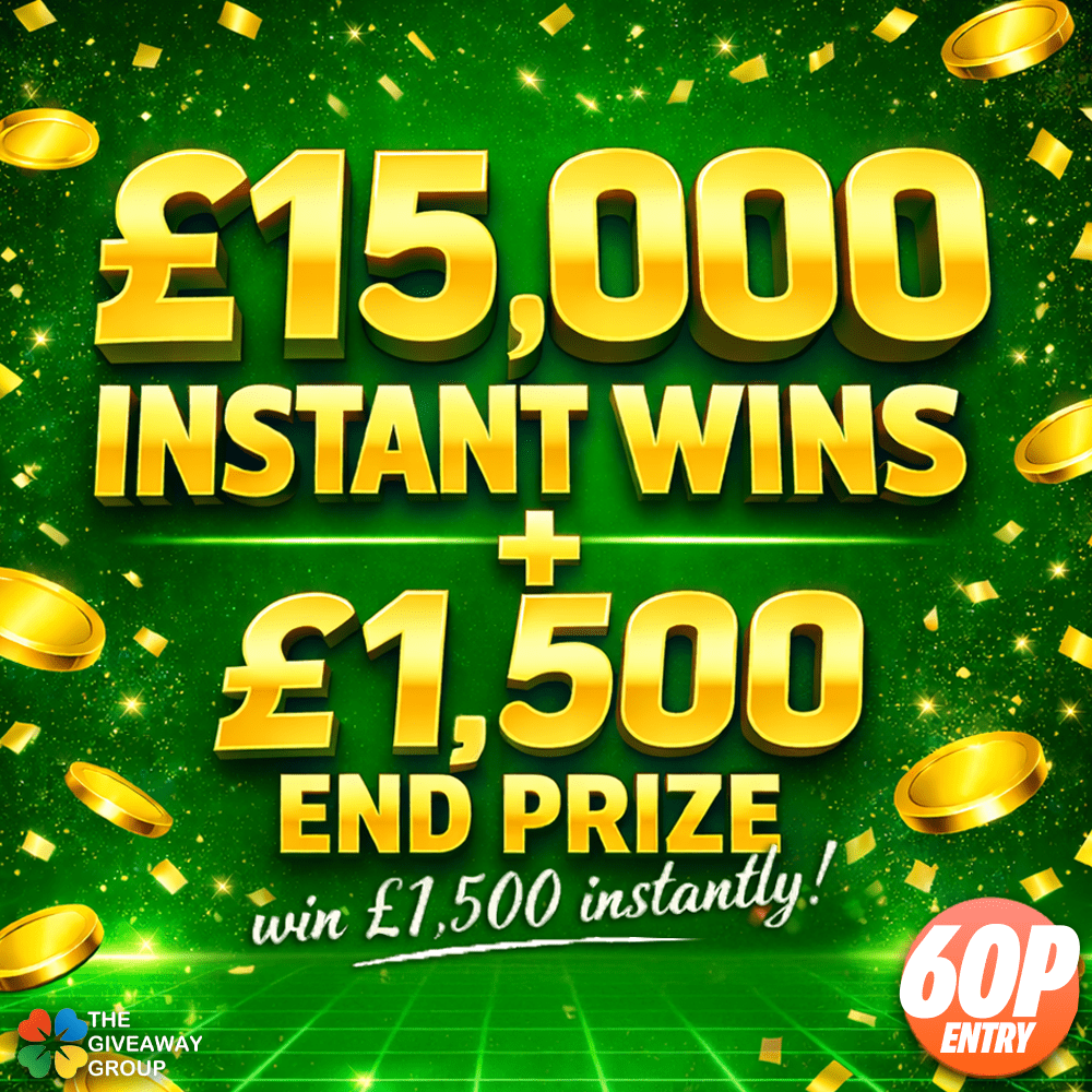 £15,000 in all cash instant wins that can be won anytime throughout the duration of the competition. There is also a £1,500 cash end prize that all tickets purchased will be in for too.