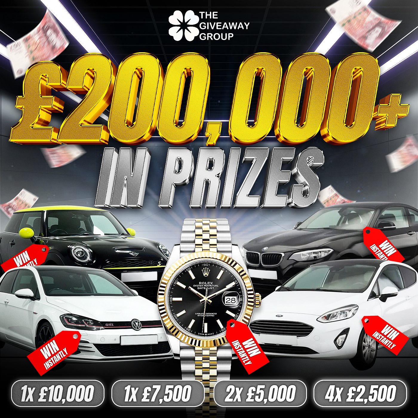 £200,000+ in Prizes | Win Cars, Rolex’s and Cash Instantly | £500 End Prize