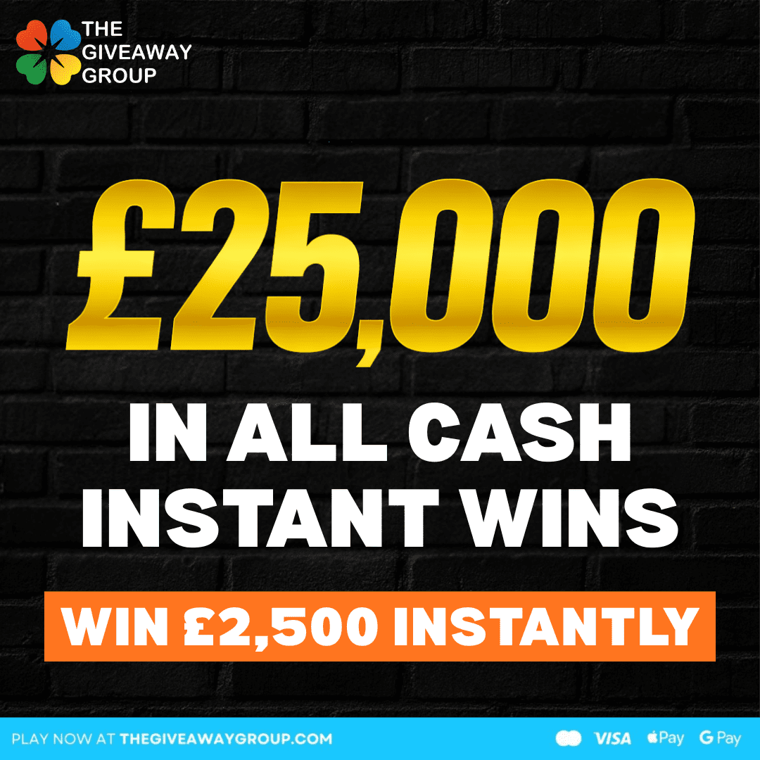 £24,000 in all cash instant wins that can be won anytime throughout the duration of the competition. There is also a £1,000 cash end prize that all tickets purchased will be in for too.